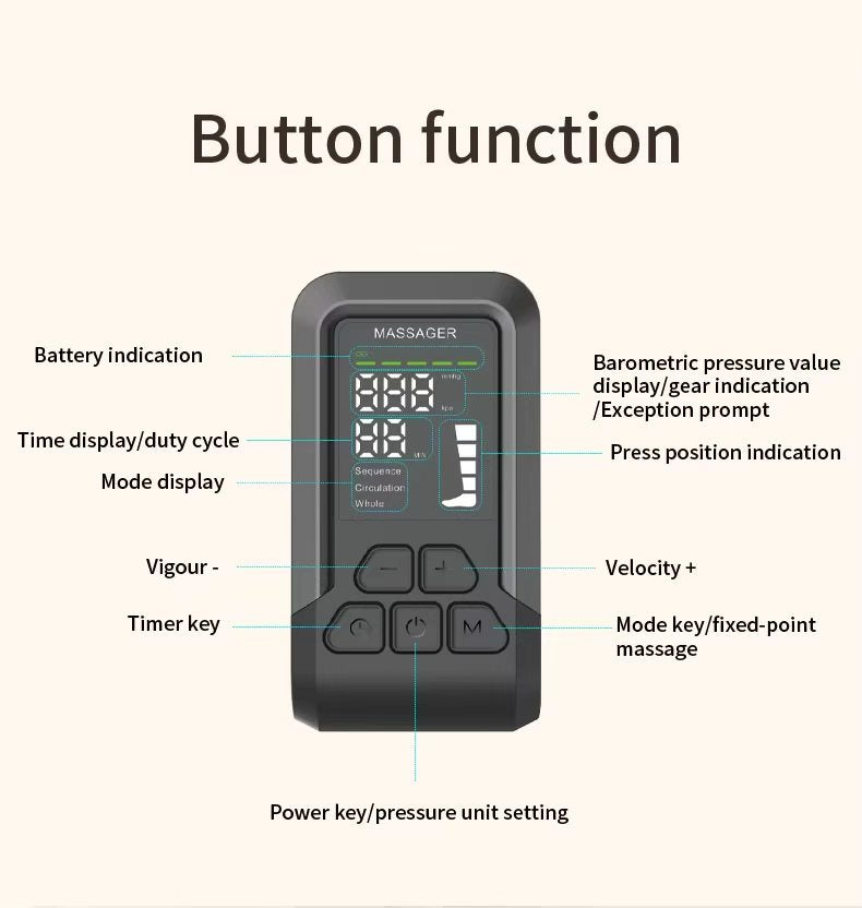 - Customizable Pressure Levels — Adjust intensity from gentle relaxation (20 mmHg) to deep tissue recovery (80+ mmHg)